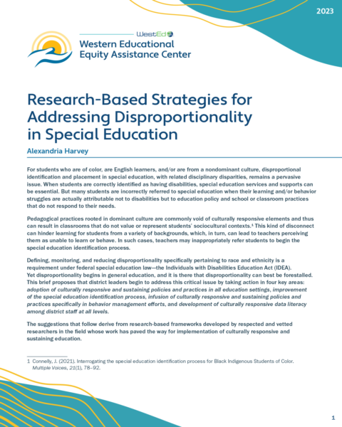 This brief from the Western Educational Equity Assistance Center (WEEAC) proposes that district leaders begin to address disproportionality in special education by taking action in four key areas:
