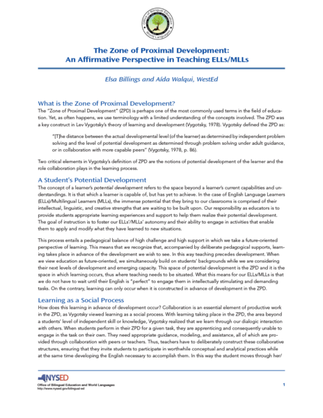 Zone of Proximal Development: An Affirmative Perspective in Teaching ELLs