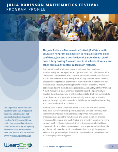 Read the Innovative Mathematics Programs brief for a summary profile of all five programs and access to the full profiles of the other programs.