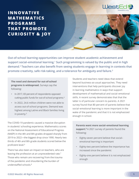 WestEd evaluated the Elevate [Math] program’s impact based on its implementation in 10 school districts near Silicon Valley (California) in the summers of 2019 and 2020.