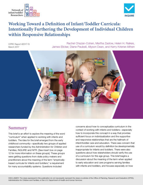 Thus, relationship-based care is a priority area for practice and policy initiatives aiming to strengthen quality standards in infant and toddler care and education settings. This brief: