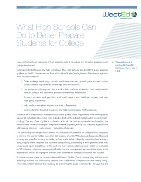 This article is a Q&A with Pamela Burdman, formerly of WestEd and a subject matter expert on how some high schools inadequately prepare their students about the knowledge and skills community colleges expect them to have.