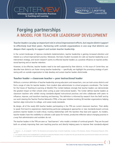This CenterView issue looks at how teacher leaders are enacting teacher leader-led professional learning and what school administrators can do to support and sustain this impactful approach to improving teaching and learning.