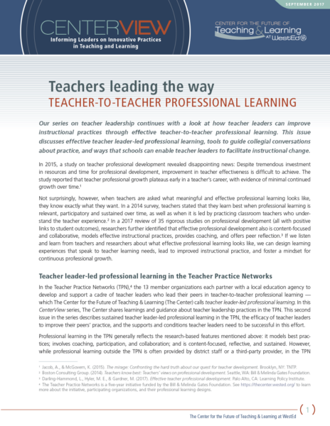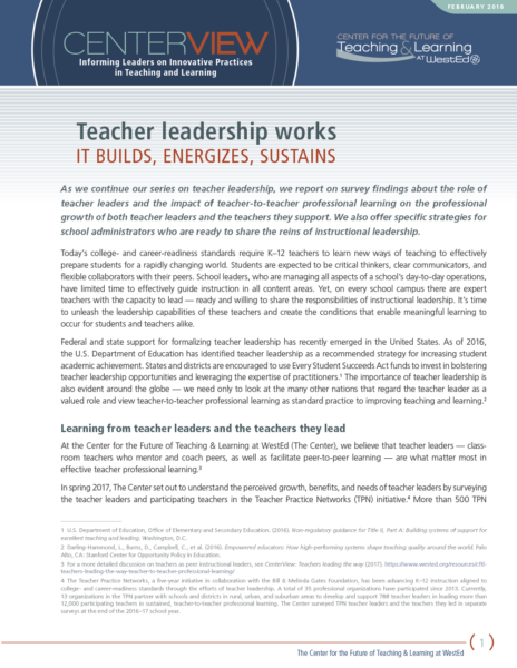 This issue is part of a CenterView series on teacher leadership in the TPN initiative. Download other issues in this series.