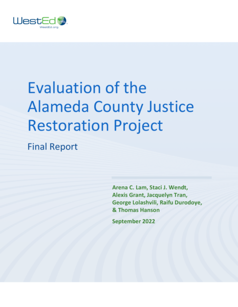 The WestEd JPRC highlights the rigorous research and evaluation work that WestEd researchers are conducting in the areas of school safety, violence and crime prevention, juvenile and criminal justice, and public health. A primary goal of the Center is to become a “trusted” source of evidence on the effects of policies and programs in these areas. In addition to conducting research and evaluation studies, Center staff promote the use of scientific evidence in making decisions about programs, policies, and practices relevant to justice and prevention.