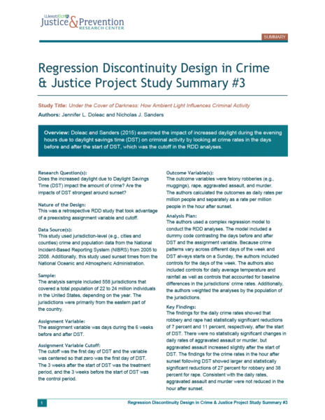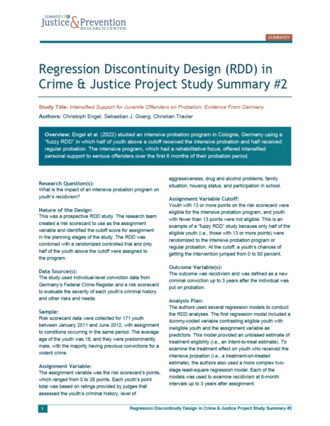 This brief discusses the potential benefits and underutilization of Regression Discontinuity Design (RDD) in evaluating justice interventions. RDD is highlighted for its ability to credibly estimate causal impacts by comparing outcomes for individuals near a predetermined cutoff, making it a valuable alternative when Randomized Controlled Trials (RCTs) are not feasible. Despite its methodological strengths, the use of RDD in justice settings remains infrequent due to factors such as lack of awareness and challenges in identifying appropriate contexts. The authors provide several recommendations to promote RDD, including intentional naming in Requests for Proposals, targeted training for researchers, and raising awareness among policymakers. They emphasize the importance of collaboration with government researchers and the development of an RDD registry to share successful applications. The paper calls for a wider adoption of RDD in order to enhance evidence-based decision-making in crime and justice policy.