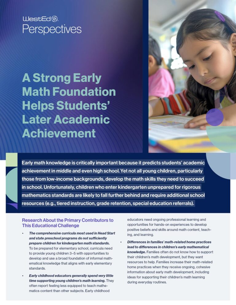 This brief shares research-informed strategies for improving math instruction in early childhood contexts and the ways WestEd can help support states in implementing these strategies.
