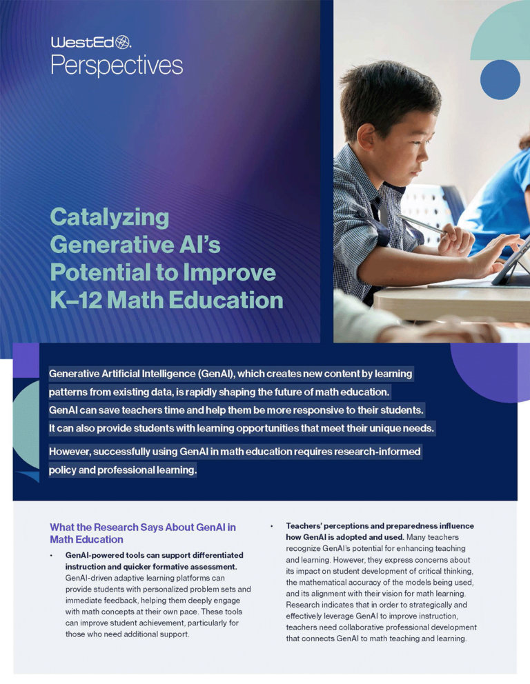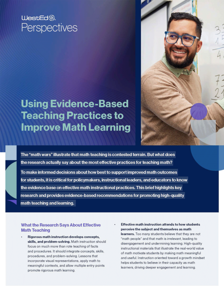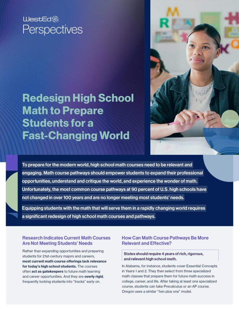 WestEd Perspectives is our new resource series designed to elevate the voices and insights of WestEd experts on urgent and complex issues in education and human development. These thought leadership pieces offer timely, research-informed analysis and actionable recommendations for state and local policymakers, education leaders, and practitioners. Whether addressing challenges in mathematics instruction, advancing accessibility in education, or supporting the whole child, WestEd Perspectives showcase the breadth and depth of WestEd’s expertise and services.