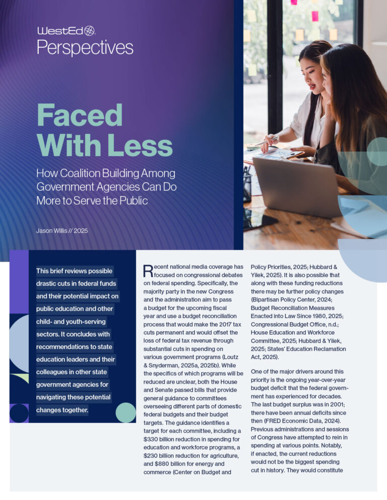 WestEd Perspectives pieces capitalize on our understanding of policy and practice to help states, districts, and schools make research-informed decisions. Each piece further highlights how WestEd can support education leaders in translating proven strategies into solutions that meet the evolving needs of students, educators, and communities.