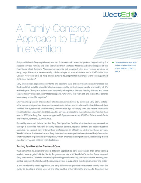 As research in this area evolved, it revealed the critically important nature of the first years of life and the profound effects of early parent-infant relationships on resiliency, health, self-regulation, and attachment. This growing body of knowledge led leaders in the field of infant and early childhood mental health to recognize that families and providers who care for young children benefit from support provided by specialists who can understand and address the whole child within the context of their relationships. This understanding sparked a series of initiatives aimed at identifying the specific knowledge and skills needed to provide effective services for young children and their caregivers. These efforts focus on high-quality professional development and support for reflective practice.