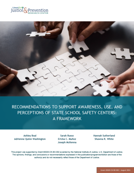 This report is the third in a series that highlights findings from an evaluation of State School Safety Centers (SSSCs) carried out by WestEd’s Justice and Prevention Research Center (JPRC) and funded by the National Institute of Justice (NIJ).