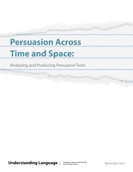 Walqui, A., Koelsch, N., & Schmida, M. (2012). Persuasion across time and space: Analyzing and producing persuasive texts. Understanding Language Initiative.