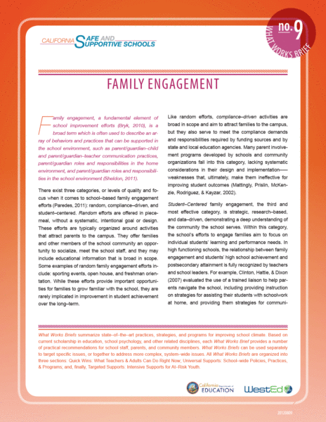 Paredes, M., O’Malley, M., & Amarillas, A. (2012). What Works Brief #9: Family engagement. WestEd. https://www.wested.org/resource/what-works-brief-9-family-engagement/