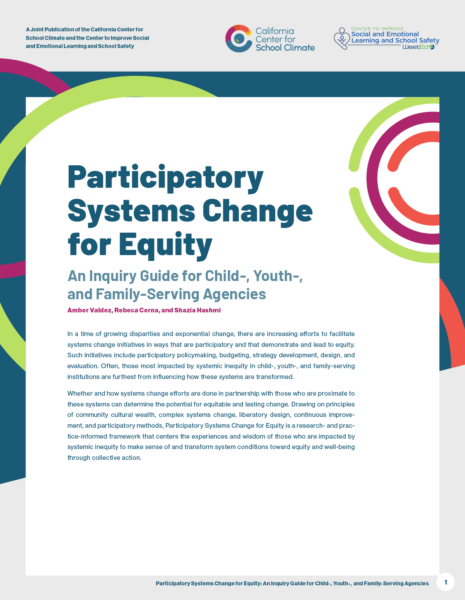 This guide from The California Center for School Climate shares strategies for creating and sustaining seven essential conditions for effective cross-sector collaboration to improve equitable access, experiences, and outcomes for young people, families, and communities: