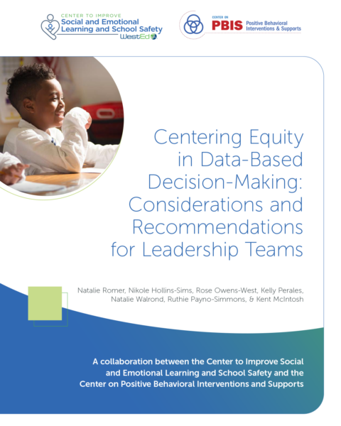 Romer, N., Hollins-Sims, N., Owens-West, R., Perales, K., Walrond, N., Payno-Simmons, R., & McIntosh, K. (2023). Centering equity in data-based decision-making: Considerations and recommendations for leadership teams.Center to Improve Social and Emotional Learning and School Safety at WestEd and the Center on Positive Behavioral Interventions and Supports.