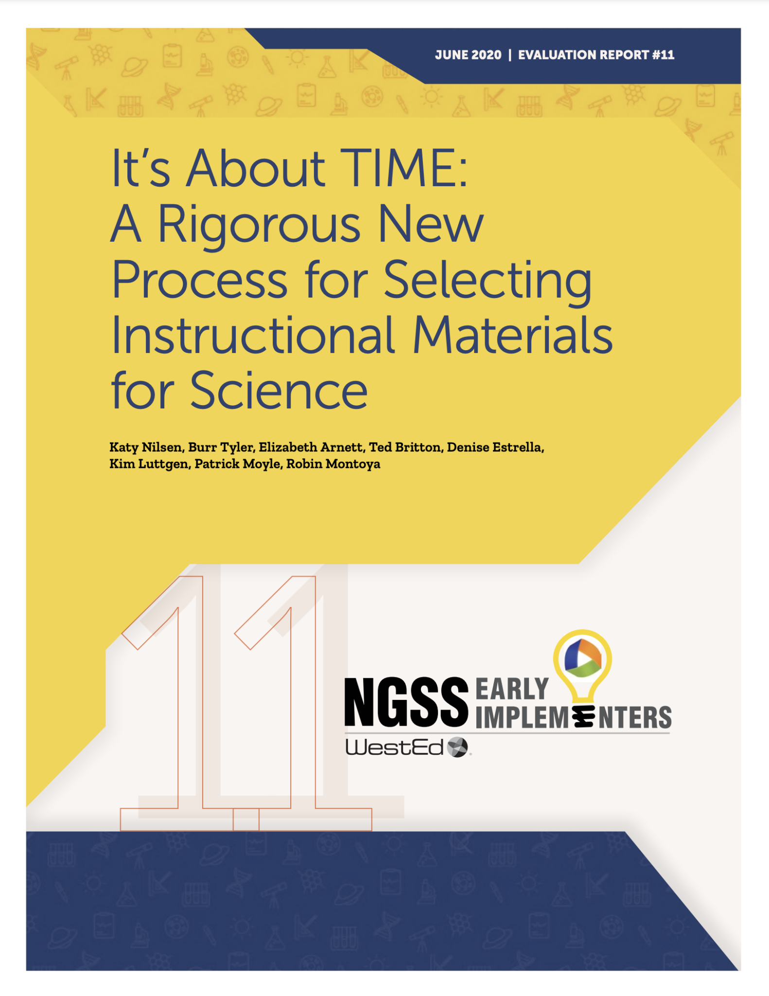 This report provides an overview of the California Next Generation Science Standards (CA NGSS) Toolkit for Instructional Materials Evaluation (TIME) process, participants’ perceptions of TIME, a detailed description of statewide TIME trainings, challenges to implementing the TIME process, and recommendations for adoption committees supporting districts’ NGSS implementation.