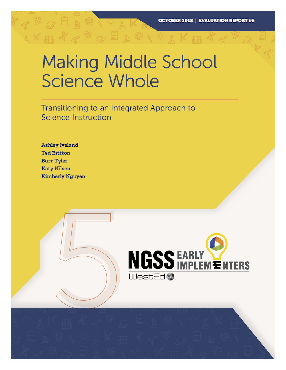 A group of teachers in eight California school districts and two charter management organizations engaged in intensive professional learning and actively implemented Next Generation Science Standards in grades K–8. The Initiative spanned from 2014 to 2020.These NGSS Early Implementers were supported by the K–12 Alliance at WestEd, and work in partnership with the California Department of Education, the California State Board of Education, and Achieve. The S. D. Bechtel, Jr. Foundation commissioned WestEd’s STEM Evaluation Unit independently of the K–12 Alliance to evaluate the Initiative in the eight public school districts. Evaluators investigated three main aspects of the Initiative’s NGSS implementation 1) districts’ local implementation, 2) implementation support provided by K–12 Alliance, and 3) the resulting science teaching and leadership growth of teachers and administrators, as well as student outcomes.