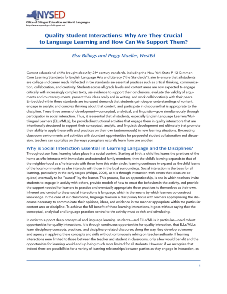 For elementary educators looking to create inclusive and effective learning environments for multilingual students, this paper provides practical guidance on designing quality learning opportunities that support these students—and all students—in realizing their full potential.