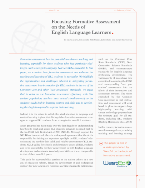This brief, written by Elsa Billings and Aída Walqui of WestEd’s Quality Teaching for English Learners, explores: