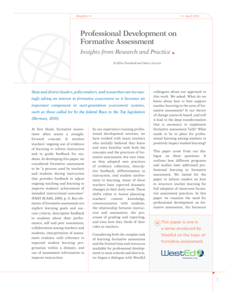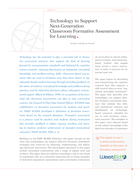 Additional WestEd resources on formative assessment are available online.