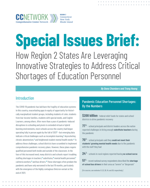 Chambers, D., & Hoang, T. (2022). Special issues brief: How Region 2 states are leveraging innovative strategies to address critical shortages of education personnel. Washington, DC: WestEd. https://www.wested.org/resources/region-2-cc-addresses-education-personnel-shortages-brief/