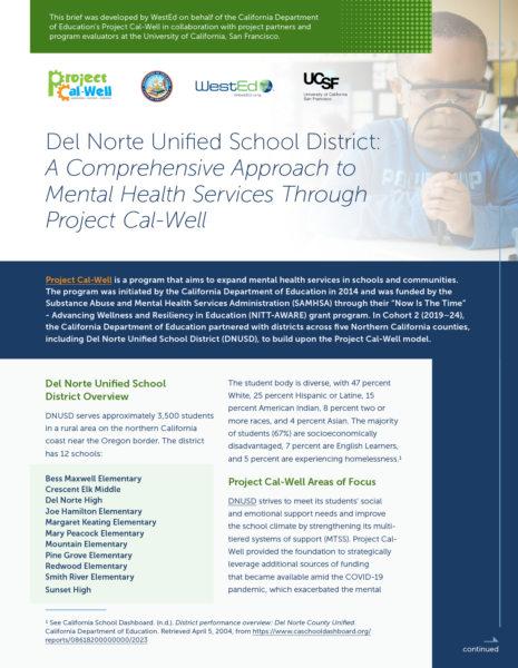 Paradise Unified School District in California recently launched several initiatives aimed at creating supportive school climates, expanding students’ access to mental health services, and developing partnerships to enhance overall student well-being. The district succeeded in reducing students’ feelings of chronic sadness and hopelessness and in lowering suicide rates.