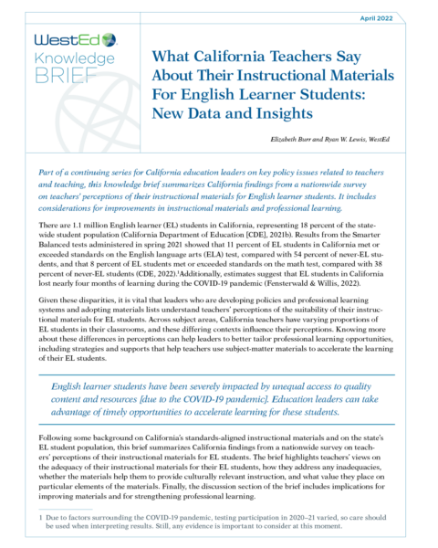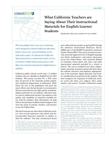 - What California Teachers Are Saying About Their Instructional Materials for English Learner Students