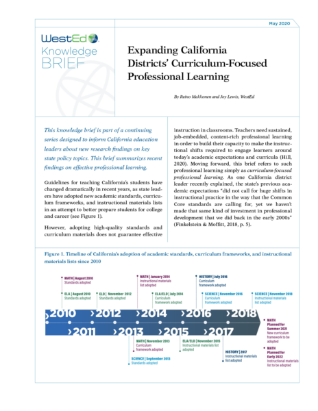 - Expanding California Districts’ Curriculum-Focused Professional Learning
