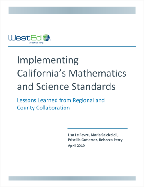 This report shares this information so that other districts across the state may benefit from some of the implementation design lessons learned by these 10 districts, as CCSS-M implementation continues and as districts shift to the Next Generation Science Standards, which demand similarly profound changes in teaching and learning.