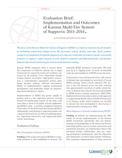 To address the need for effective MTSS implementation, WestEd recently engaged in a research and technical assistance partnership as subject matter experts that guided the design and implementation of effective MTSS. WestEd researchers simultaneously studied these efforts’ short-, mid-, and long-term effects on student outcomes.