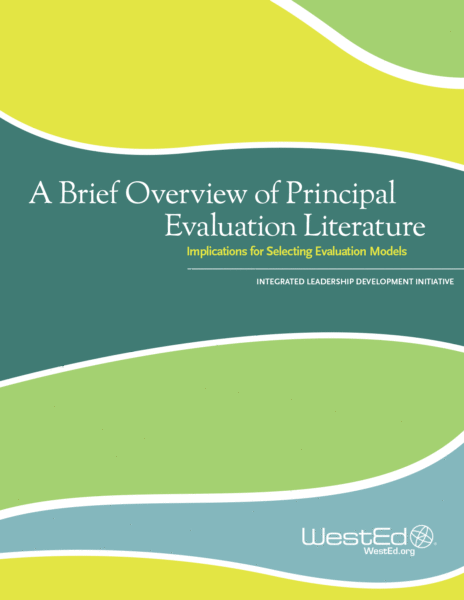 This overview provides highlights from The Policies and Practices of Principal Evaluation: A Review of the Literature, a comprehensive literature review of principal evaluation systems. The review is derived from a set of primary and secondary sources from reputable publications. The review and overview were cowritten by Karen Kearney formerly of the Leadership Initiative at WestEd.