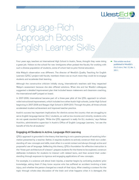 Aída Walqui’s observation was different. The director of WestEd’s Quality Teaching for English Learners (QTEL) project told faculty members there was so much more they could do to engage students and accelerate their learning.
