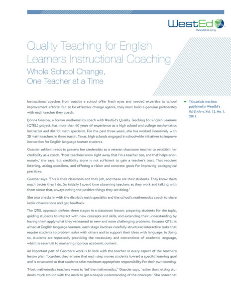 International’s teachers said they respected Walqui’s assessment because she also offered solutions. When Walqui and her WestEd colleagues suggested a detailed improvement plan that included lesson makeovers and classroom coaching, the International staff jumped on board.