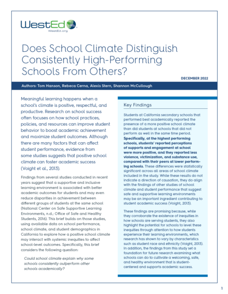 This study, produced by REL West, examines whether participation in student listening circles increases students’ connectedness to school, the quality of their relationships with school staff, and perceptions of school climate and their own personal competencies.