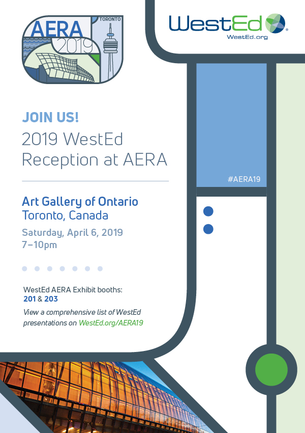 WestEd staff will present, chair, or serve as discussant in more than 40 sessions during the 2019 American Educational Research Association (AERA) Annual Meeting, April 5–9, in Toronto, Canada. The AERA Annual Meeting is the largest gathering of scholars in the field of education research. This year’s theme is “Leveraging Education Research in a Post-Truth Era: Multimodal Narratives to Democratize Evidence.”