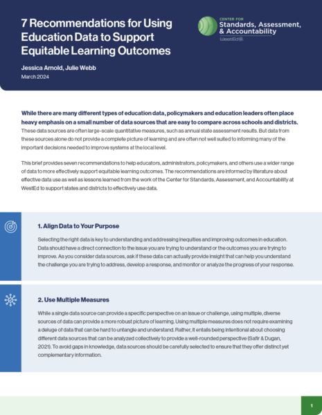 This brief provides seven recommendations to help educators, administrators, policymakers, and others use a wider range of data to more effectively support equitable learning outcomes.