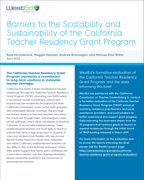 “WestEd’s evaluation of the Teacher Residency Grant Program has provided unbiased and timely insights, helping us to make informed decisions and adapt implementation to elevate teacher residencies across the state. This work has helped the Commission on Teacher Credentialing and our partners across the state, adapt implementation in response to learnings about enrollment, diversity, affordability, and sustainability. I am optimistic about the expansion of residency pathways informed by the continued evaluation partnership with our colleagues at WestEd.”