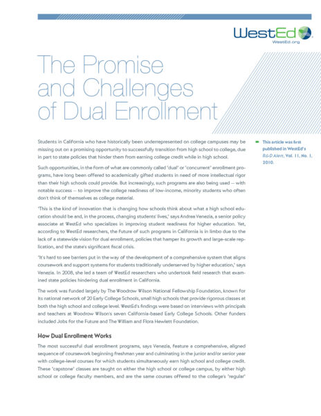 WestEd has received a 5-year, $5.9 million grant to adapt Quantway, a research-based, college-level quantitative reasoning course, for dual enrollment. This adaptation will allow high school students to take the course and earn college credit. Working with Dallas College, WestEd will adapt the existing course to meet the learning needs of high school students and evaluate how the course impacts student learning and college readiness.